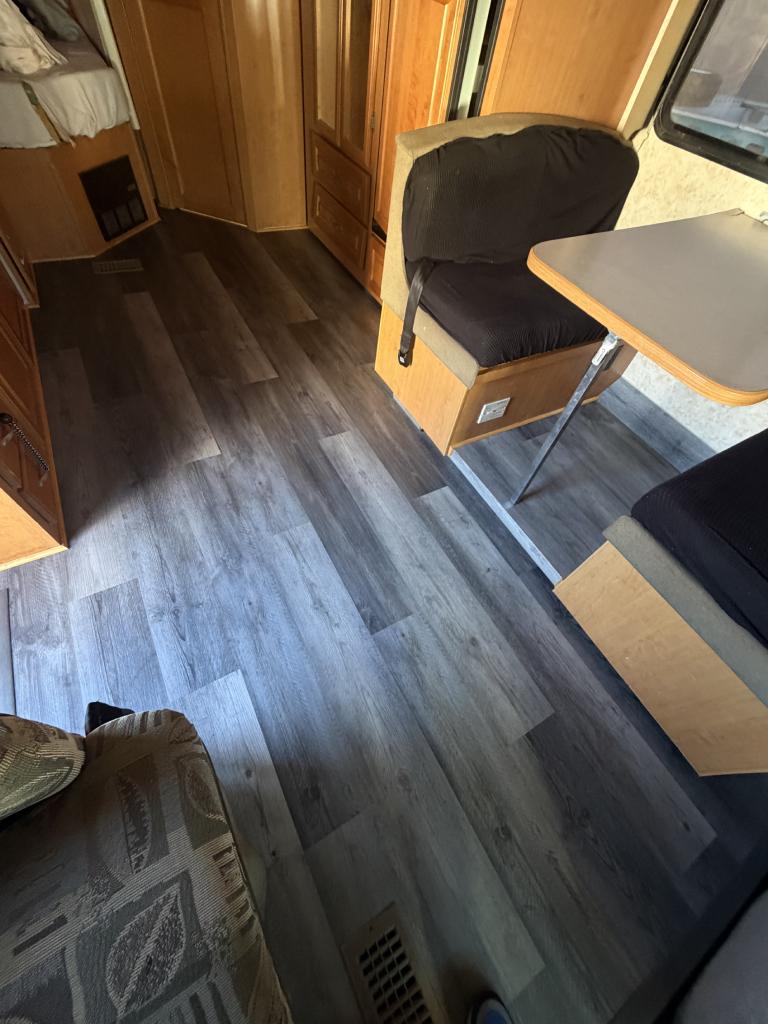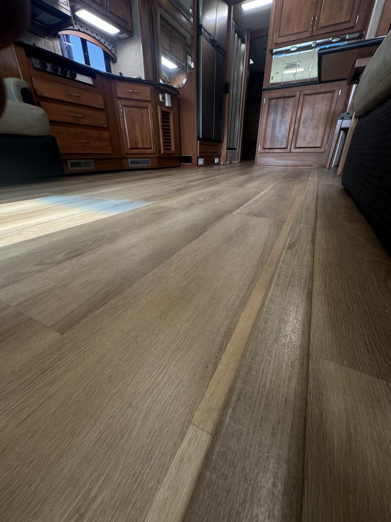 Vinyl flooring in RV slide out works well because it handles movement and weight. Slide-outs constantly shift, so the floor must stay stable and flexible. Vinyl planks resist moisture, scratches, and temperature changes.