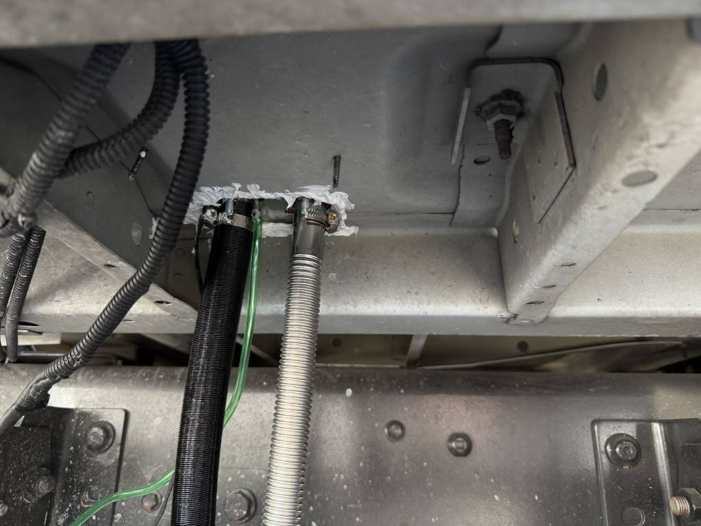 Next, we set up the airflow system, attaching the warm air inlet and outlet hoses, along with the vent pipe. The intake manifold and exhaust system, including the muffler, were installed to ensure proper combustion airflow and quiet operation.