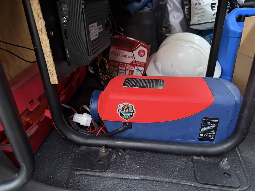 We selected a 12V 5kW diesel air heater designed to deliver strong and stable heating while remaining energy-efficient. During start-up, the heater draws 9-13A, then switches to a low 2-4A working consumption. The heater is paired with a dedicated fuel tank, allowing reliable autonomous operation on diesel.