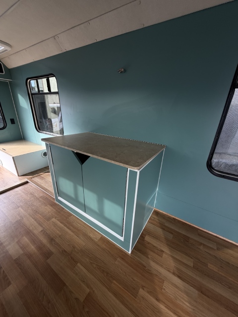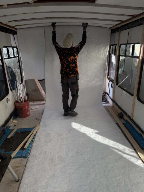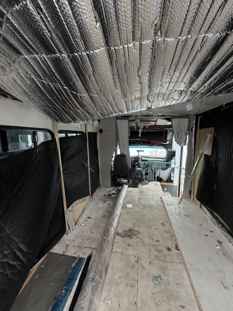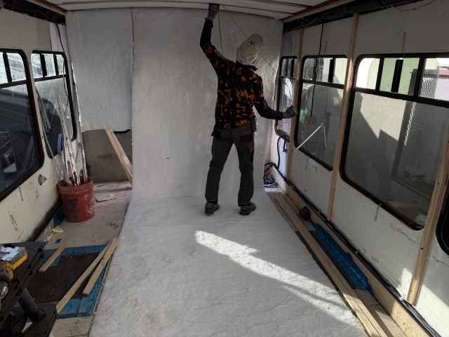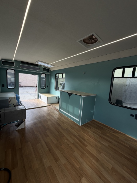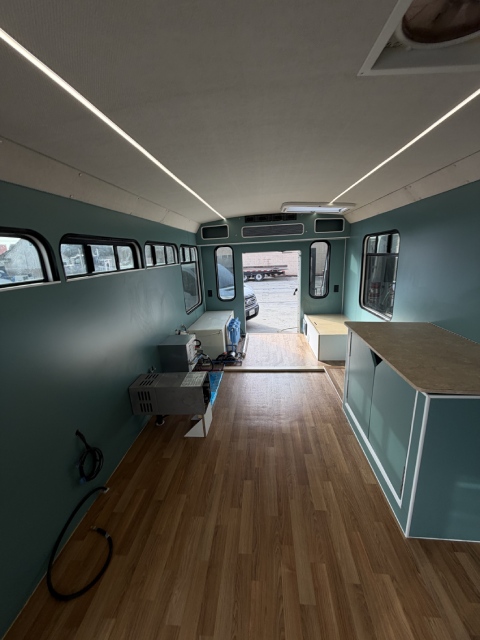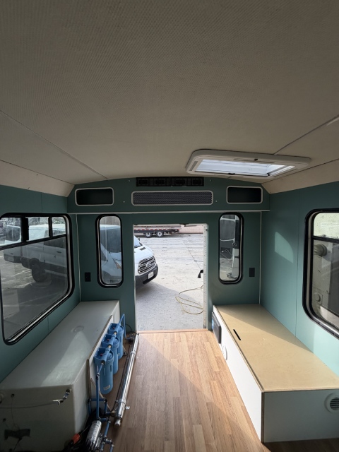 We removed the old interior and installed new insulation, wiring, and a modern electrical system with solar power.