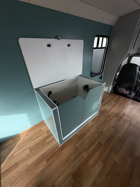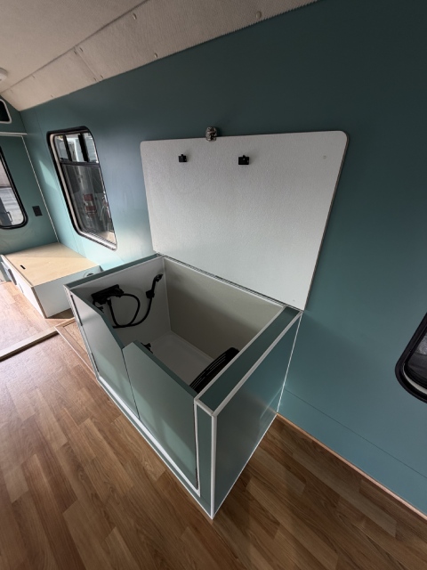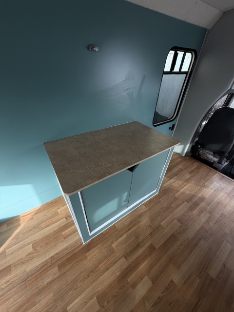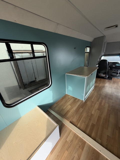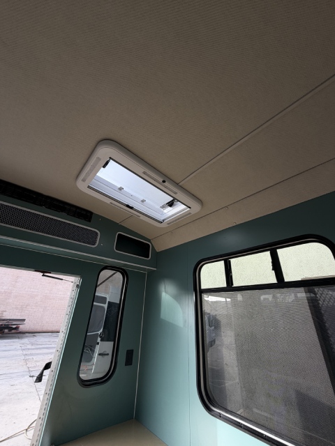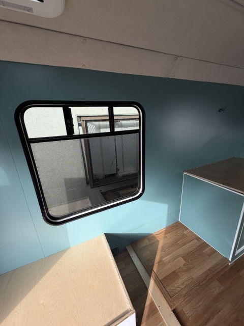 Also, we replaced a broken window, and add a custom rear shelf to cover the AC unit.