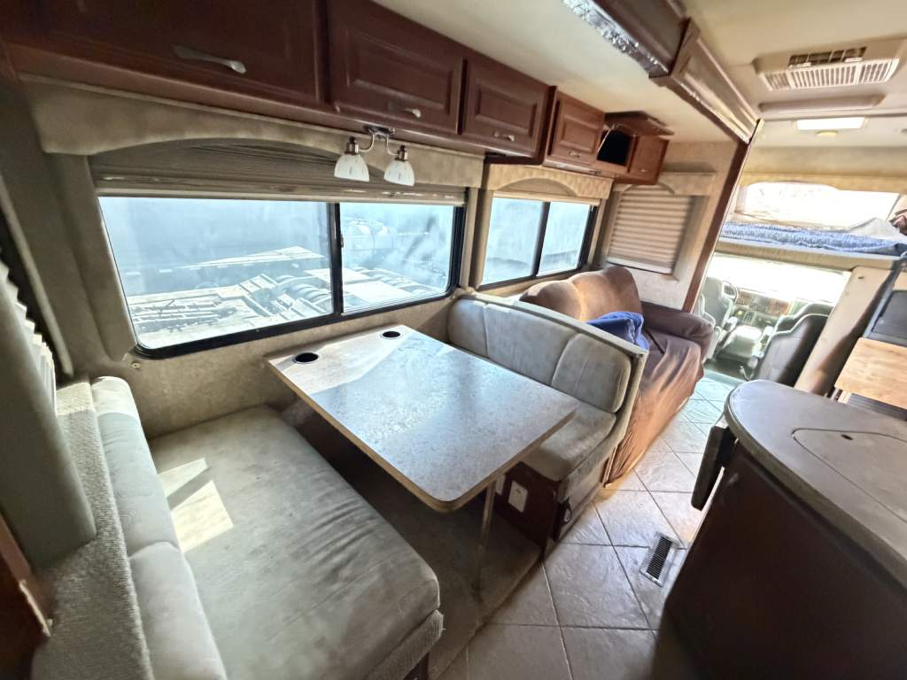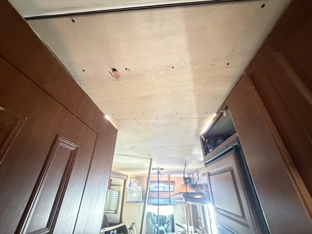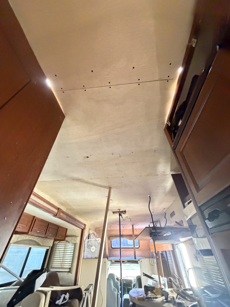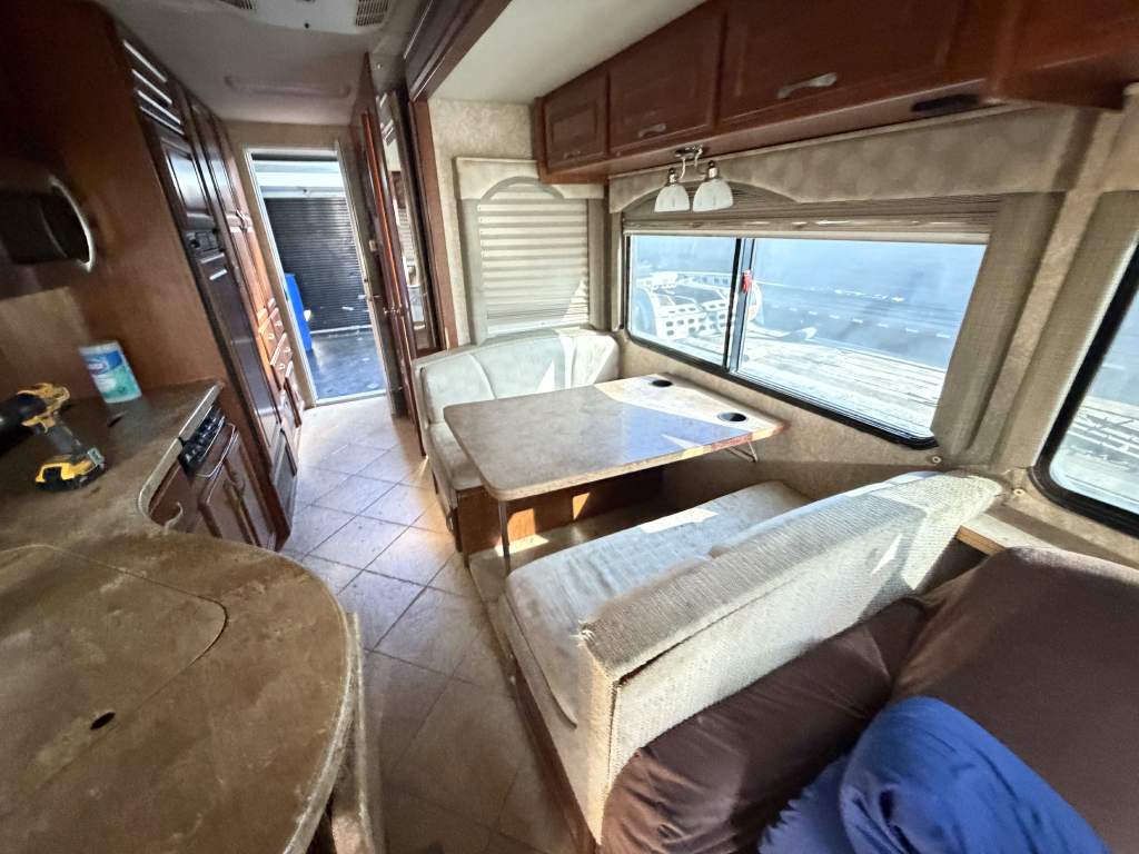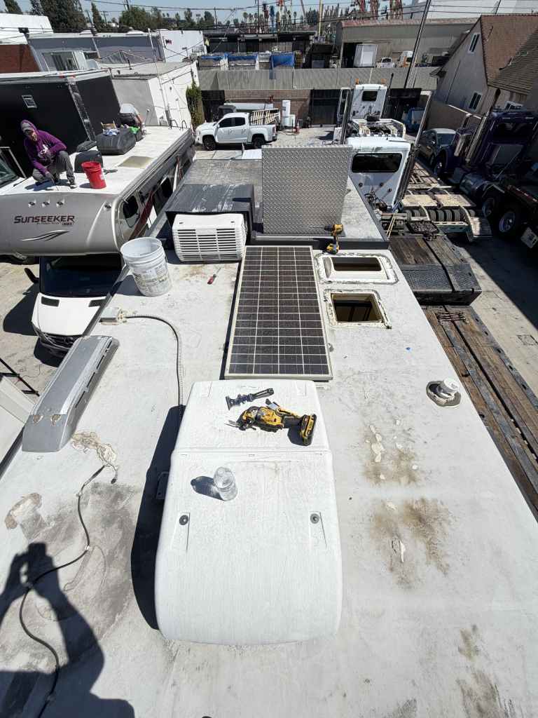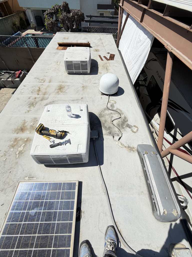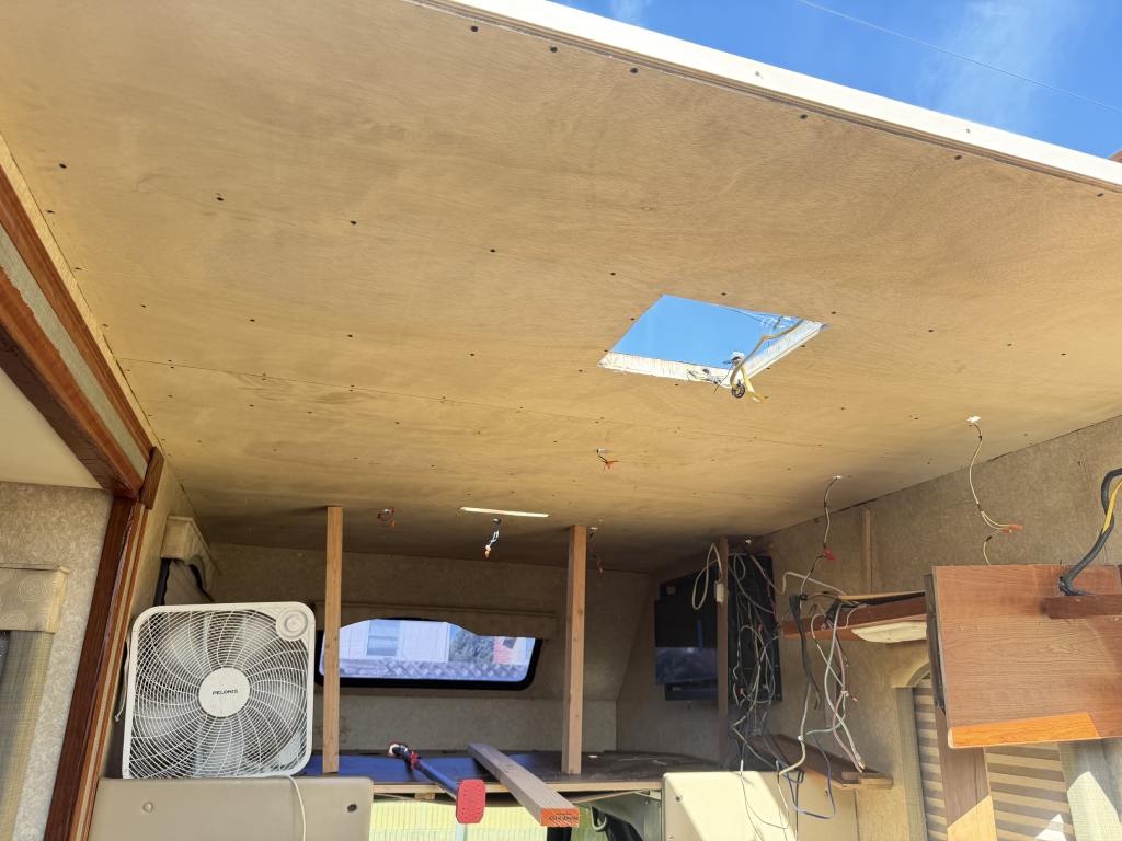 This project focused on repairing damaged RV roof on Four Winds Fun Mover. We reinforced the structure and converted the flat roof into a curved design. This change helps water drain off the sides instead of staying on top. The full project was completed in just two weeks. Below, you can see the full process in videos and photos. We also completed light interior updates, which are shown further on this page.