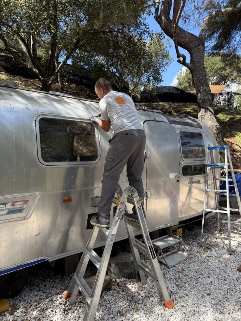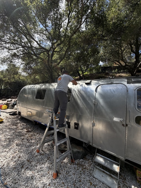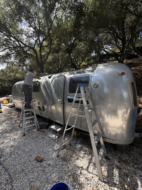 This vintage Airstream needed our help. We removed old vents, the AC, and the antenna. Then covered the entire roof with new aluminum sheets. And installed a brand-new Dometic AC unit for better airflow and modern comfort.