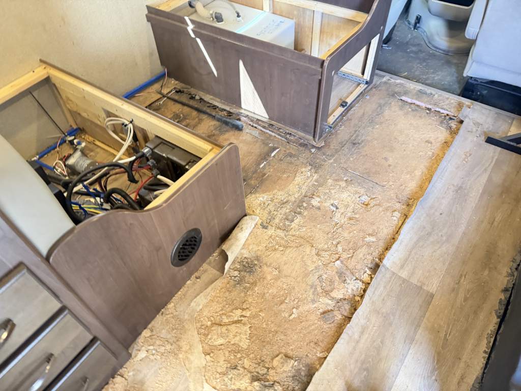 Recently, a client contacted us about a damaged floor in his RV. This project involved vinyl plank flooring installation in a Four Winds Class C Motorhome, but it was more than a simple flooring update. First, we removed rotten plywood and carefully rebuilt the floor base for lasting durability. Then, step by step, we completed a full floor upgrade, which you can see in the photos and video below.